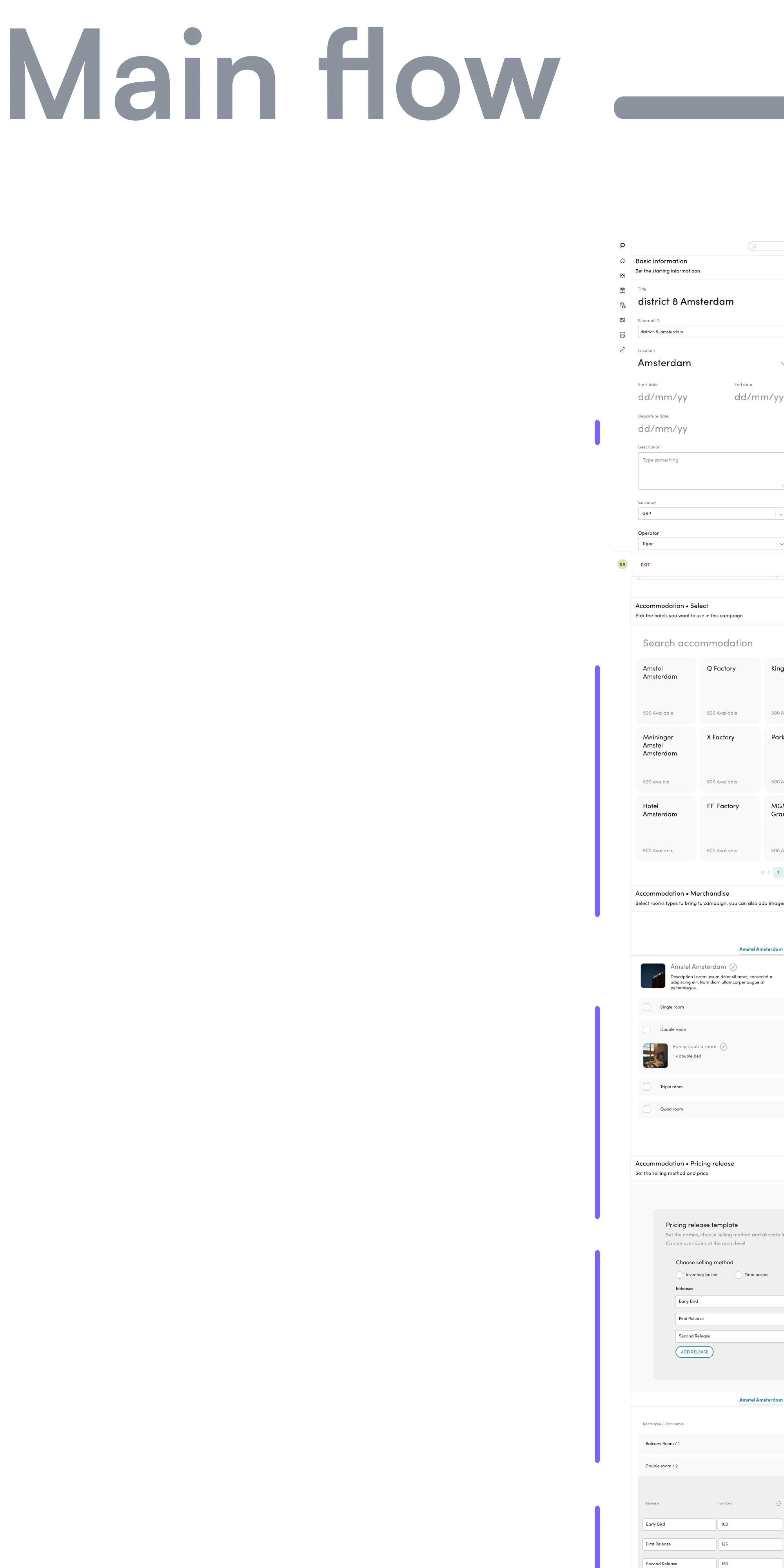 At this stage I ran a testing session with users and stakeholders, whereby I got them to go through the process of building a campaign. The tasks shown in the pink box. Strategically placing tasks in the most complex sessions to see how userfriendly the design was and in-turn mitigate for higher levels of domain knowledge needed to build campaigns.