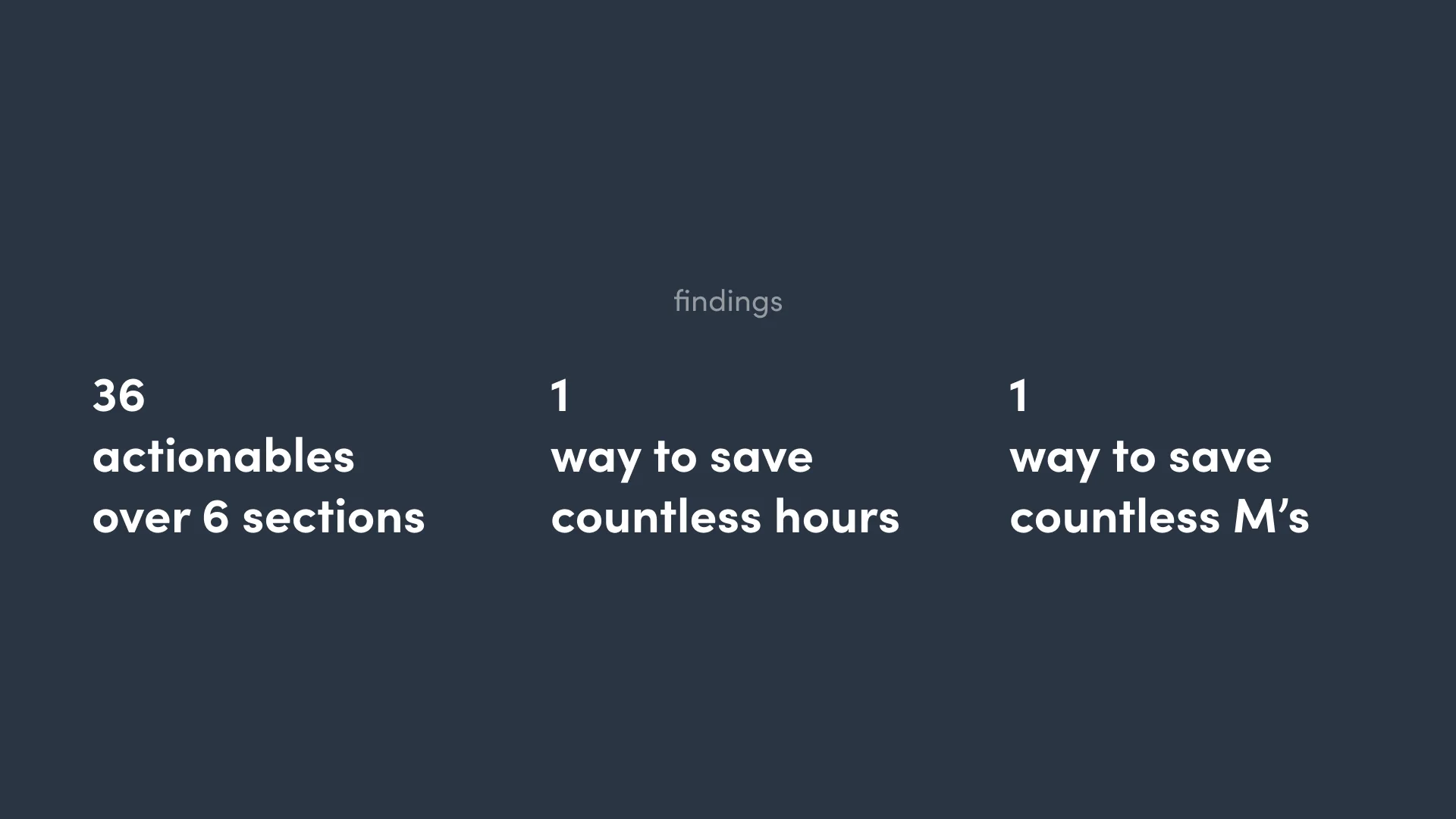 Here is all the findings condensed, with notes, information and actionables.